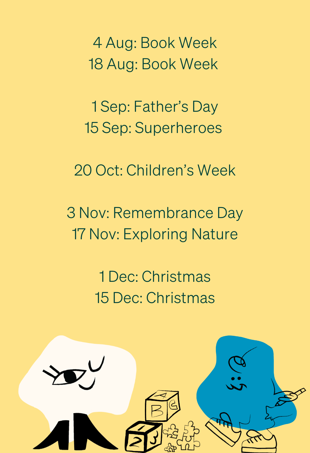 All children must be supervised by a parent or guardian. Perfect for children aged 0 - 5 years old. All accompanying adults will receive the caffeine hit required to grow our little locals into excellent humans (we'll see you at Bites and Brew)